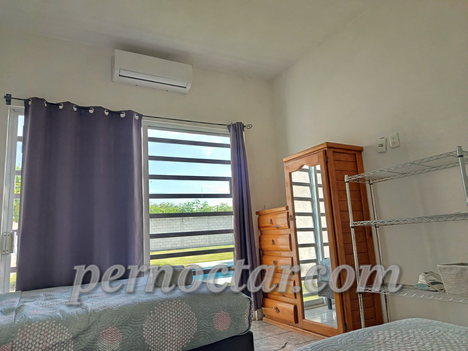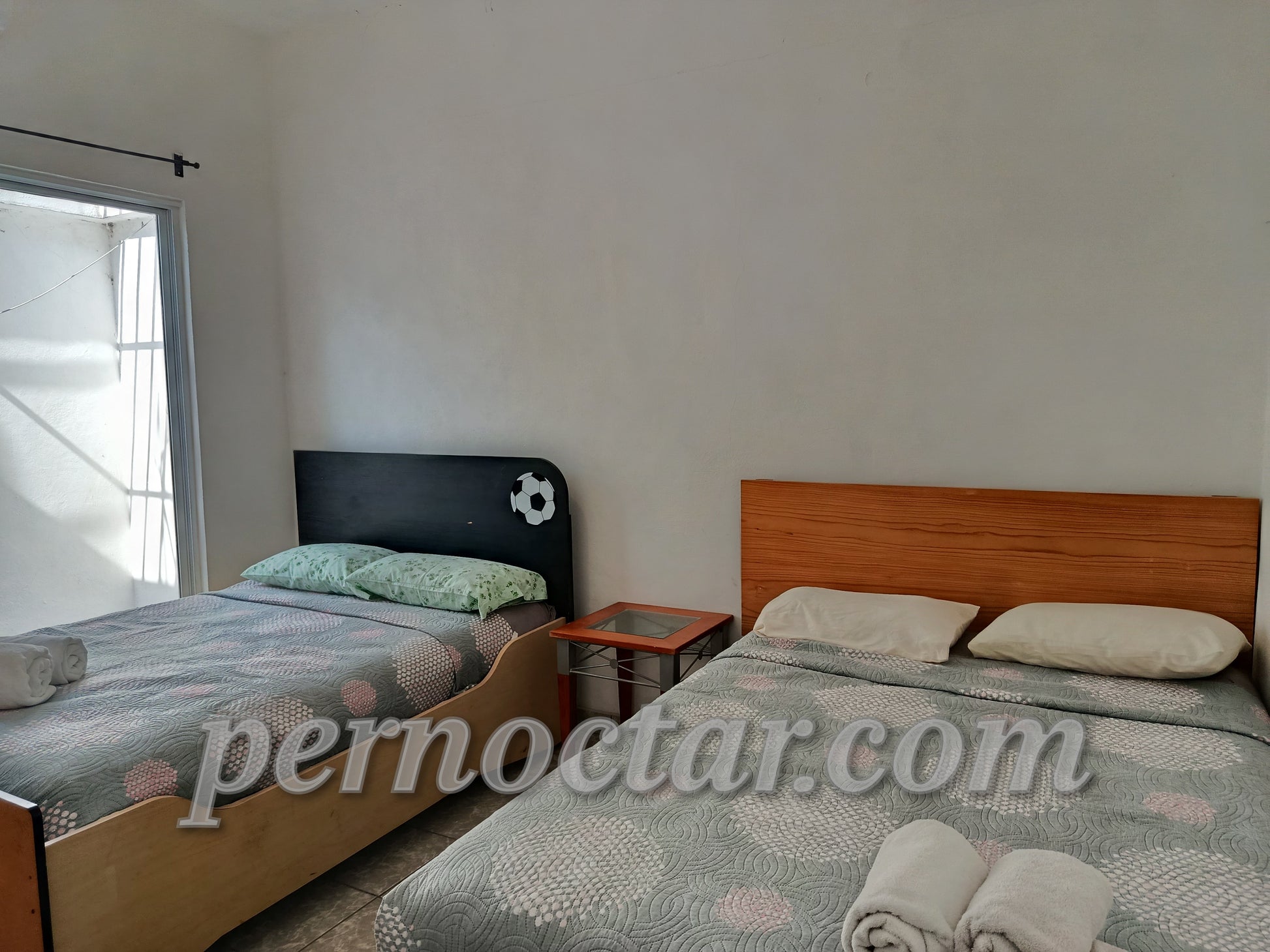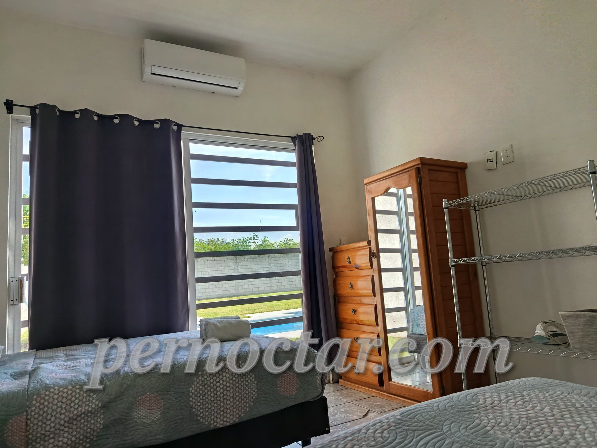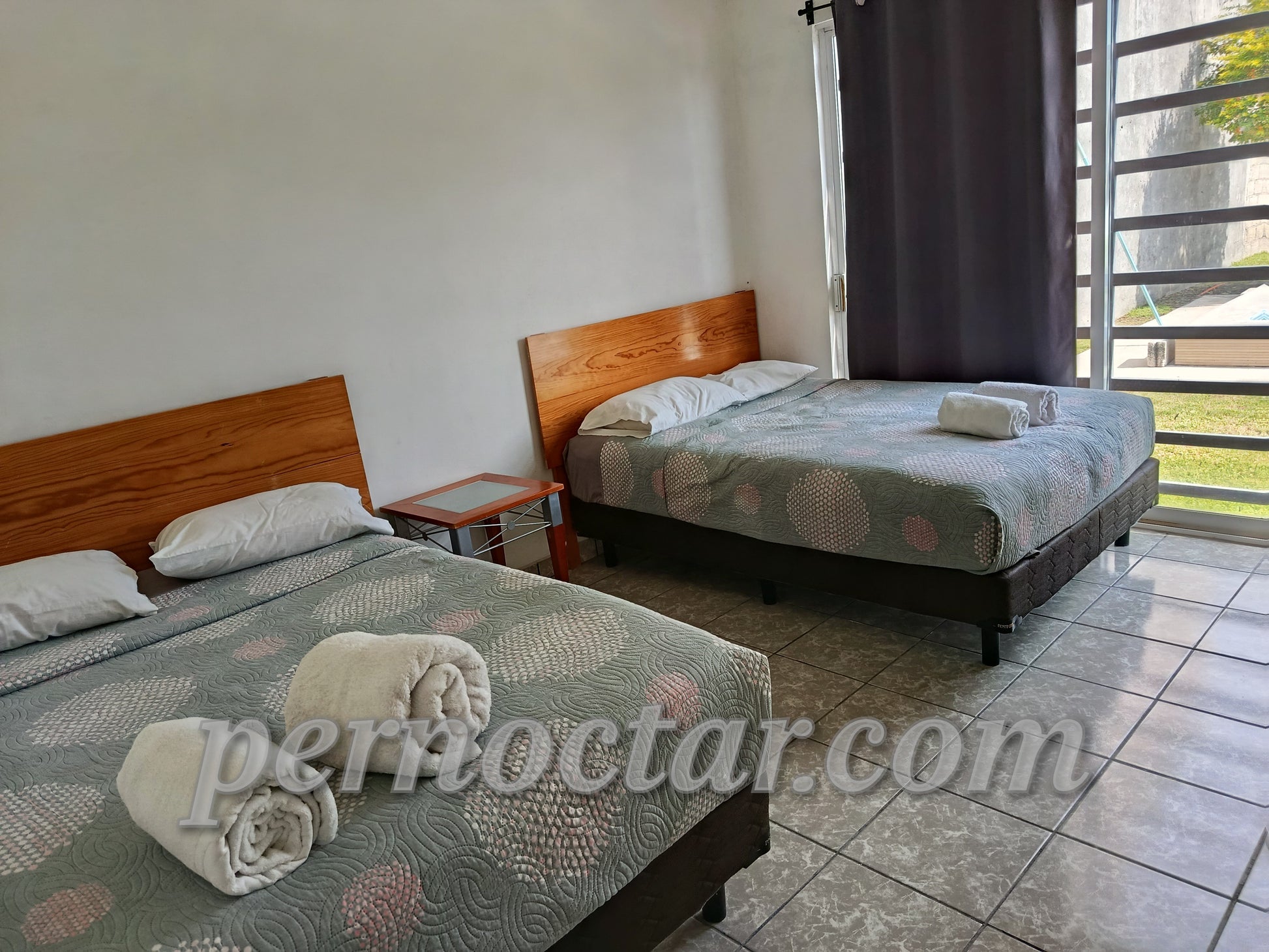 2 camas matrimoniales, aire acondicionado.