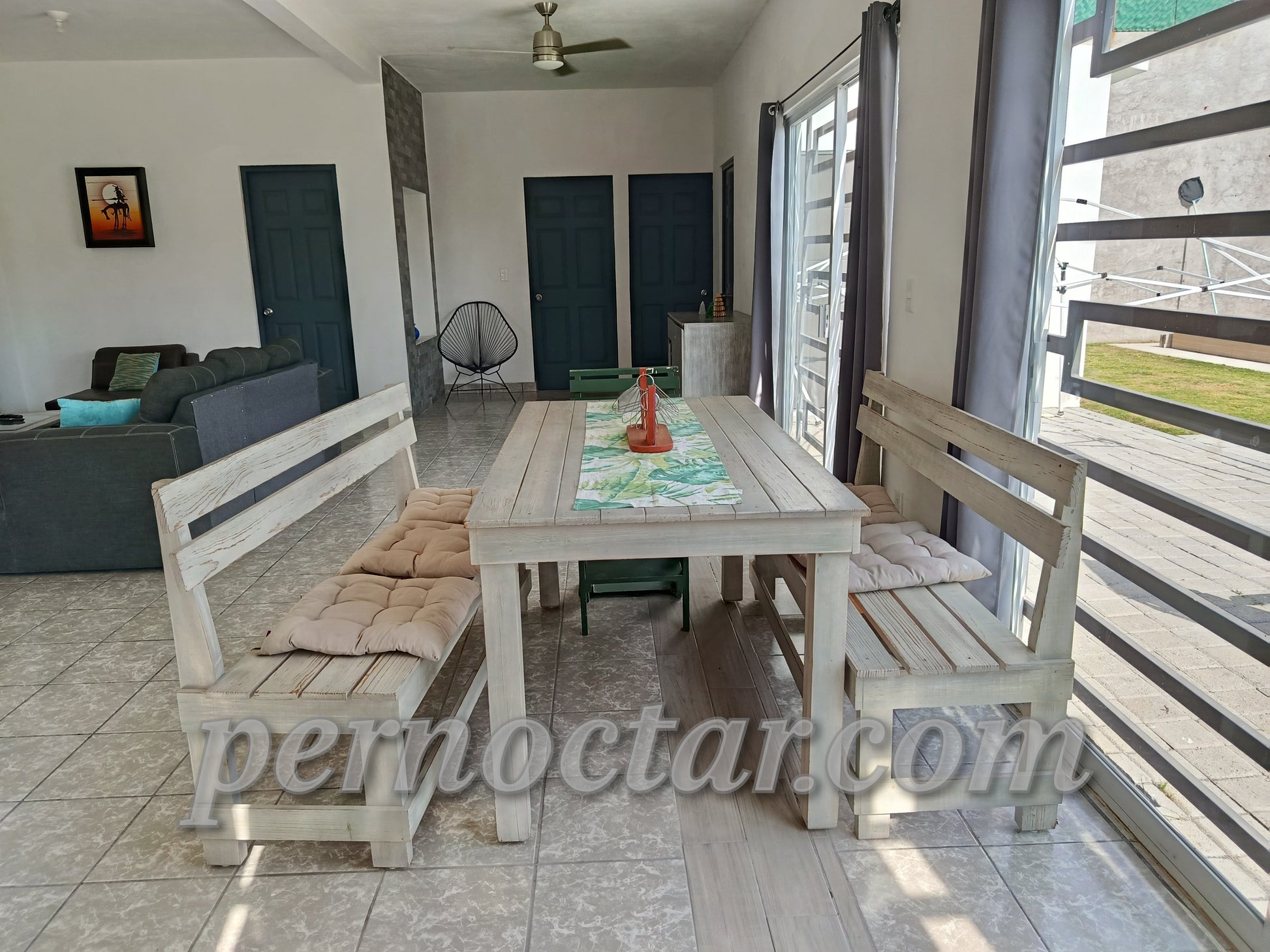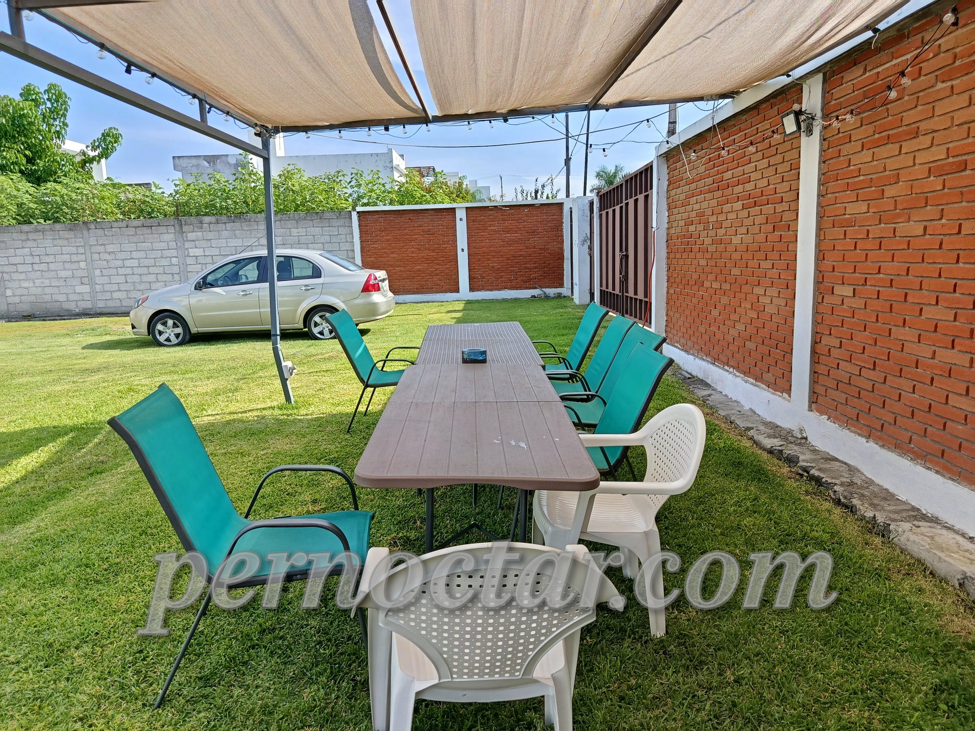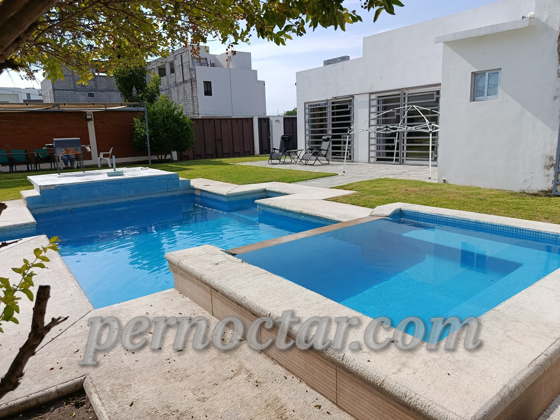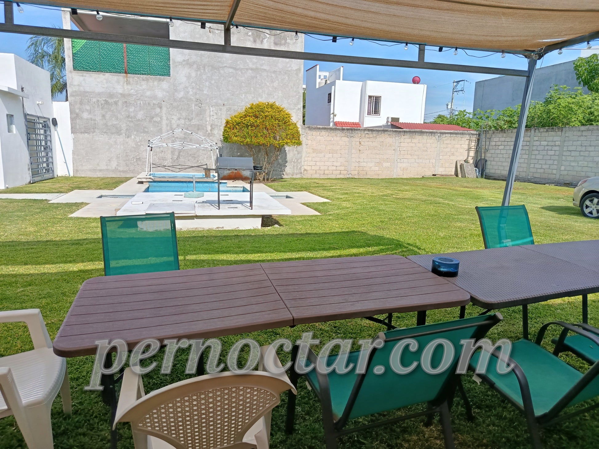 - Palapa: 2 tablones, 8 sillas. Sombrilla, 2 camastros, mesa de servicio. Asador. Baño completo (que se comunica con el interior de la casa)