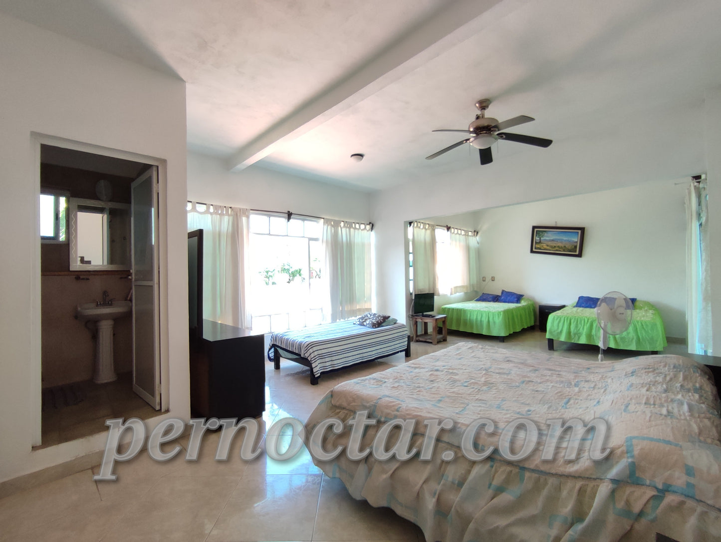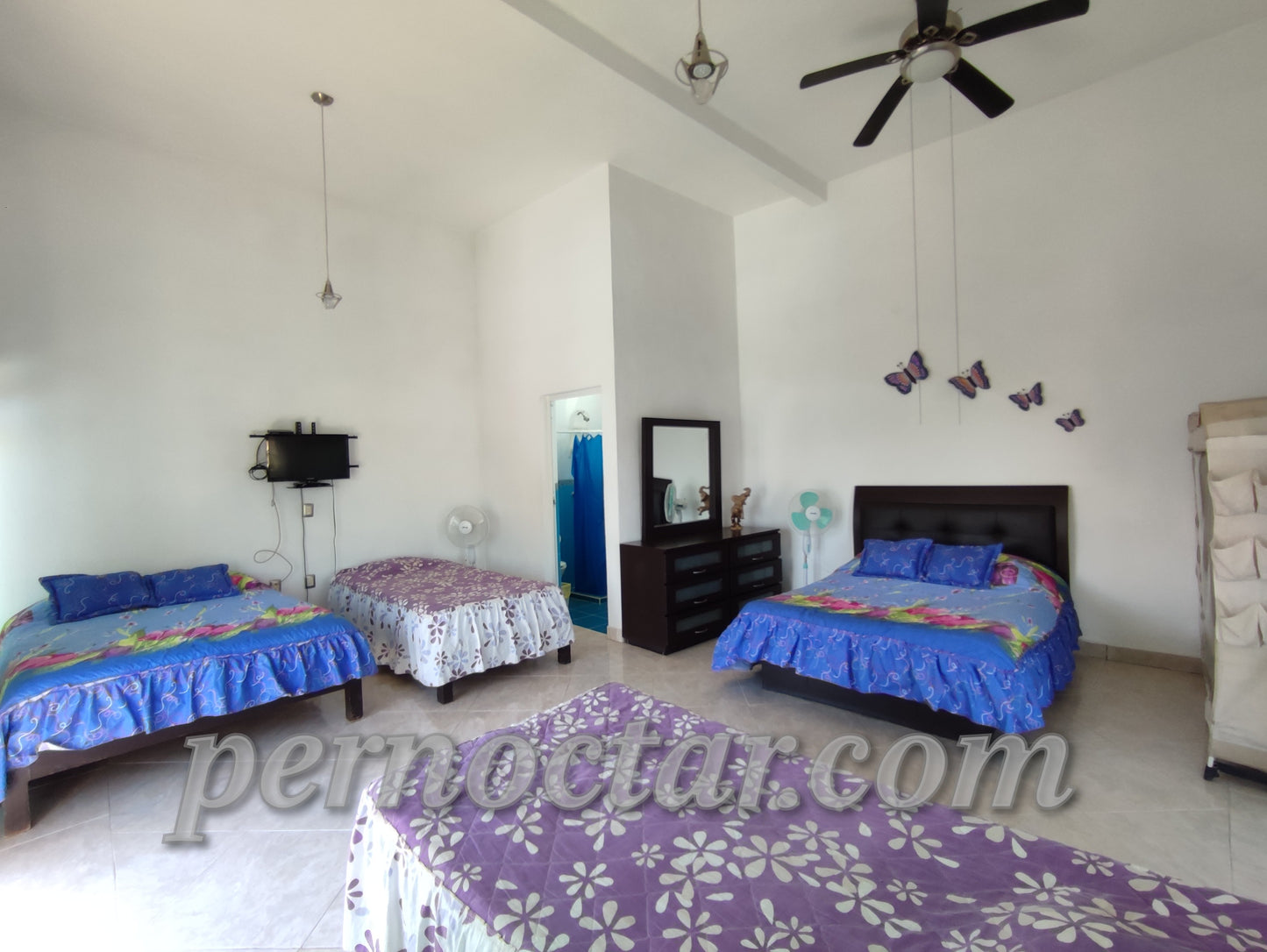 - 3 camas matrimoniales, 2 camas individuales, ventilador de techo, baño completo, TV con Megacable, 2 ventiladores de pedestal.