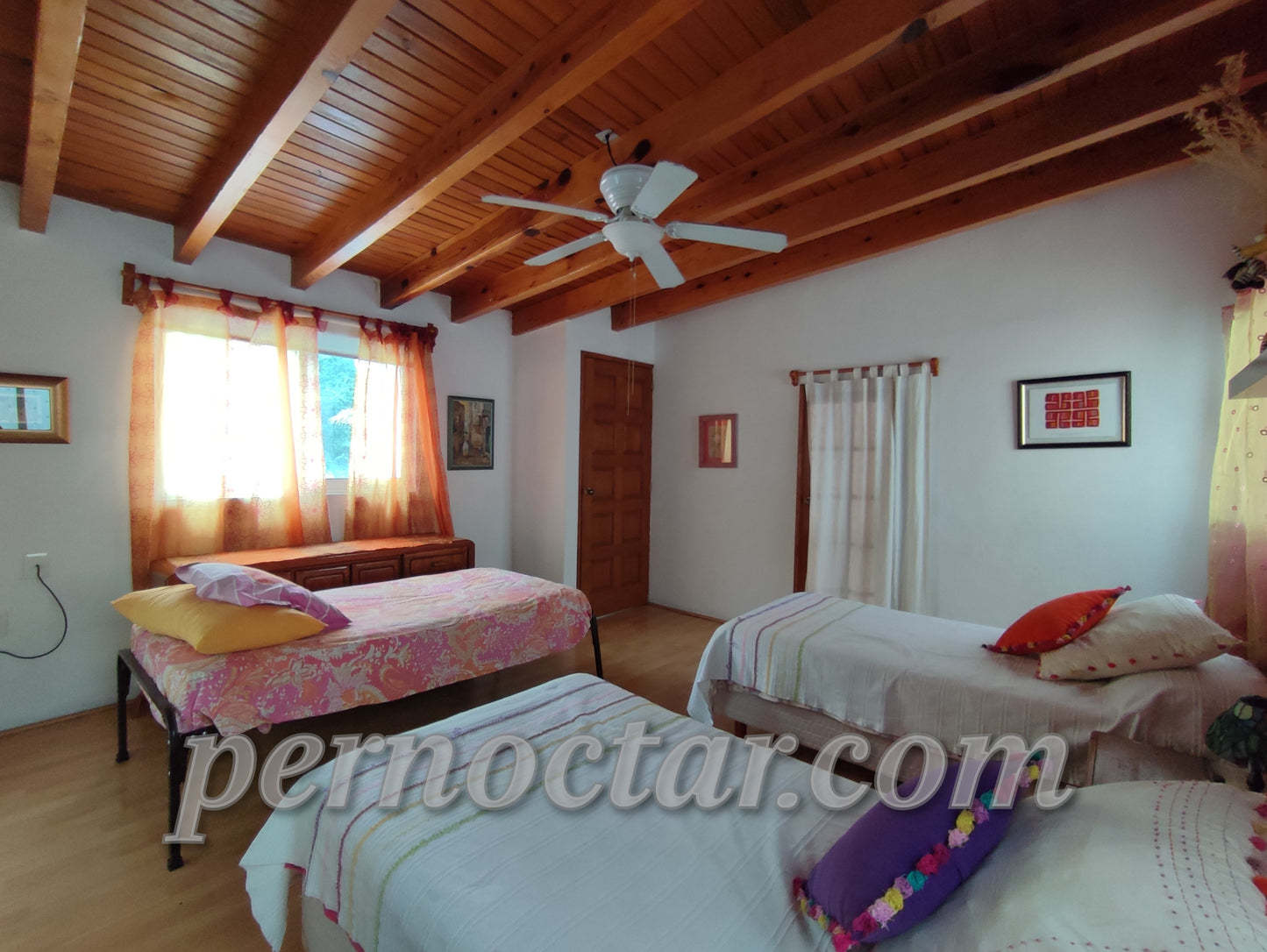 - 3 camas individuales, ventilador de techo, baño completo.