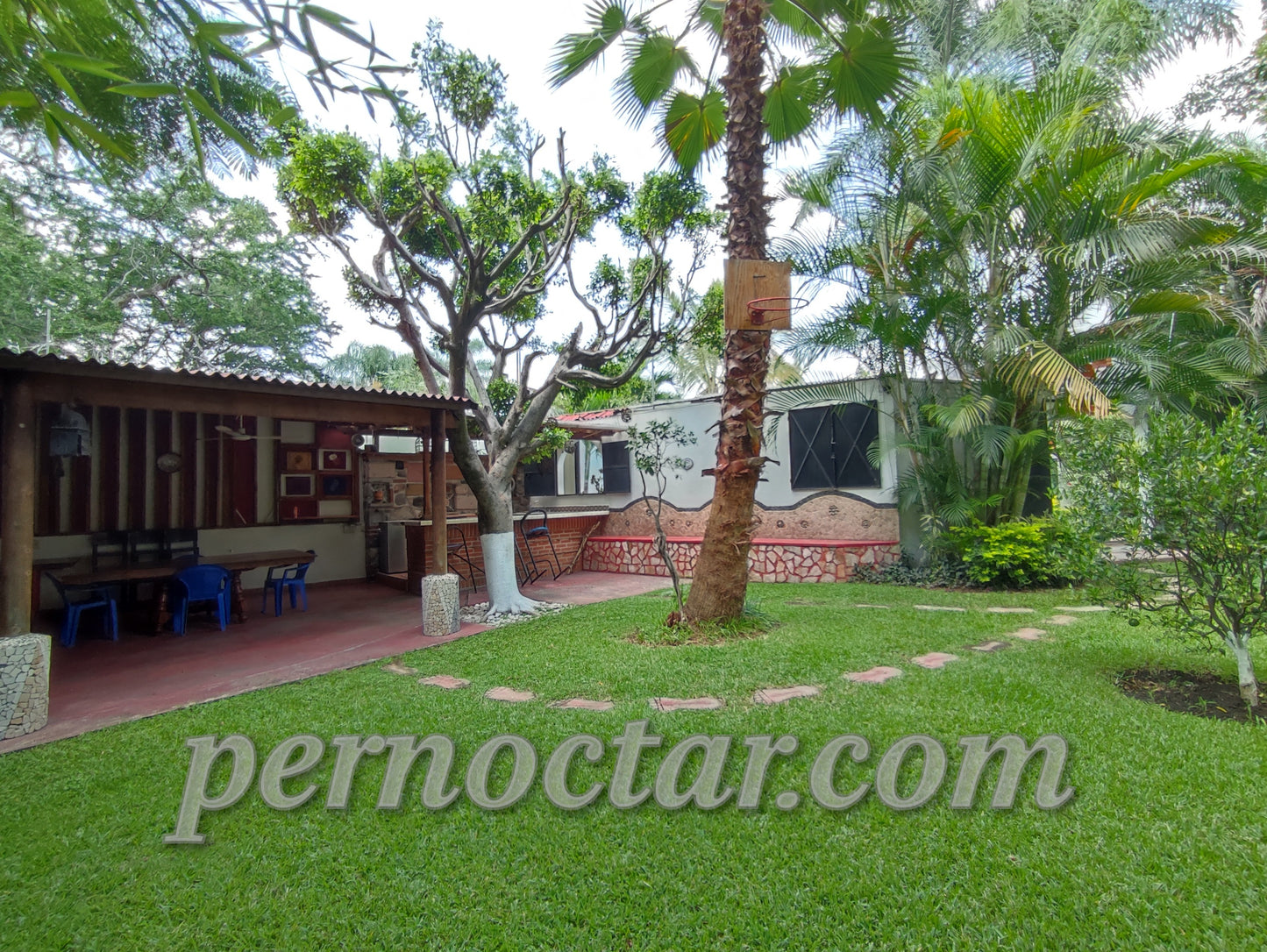 - Palapa: mesa rectangular, 12 sillas, banca, ventilador de techo.