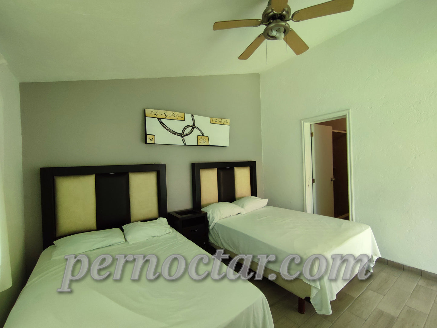 - 2 camas matrimoniales, ventilador de techo, baño completo que se comunica y comparte con habitación #5.
