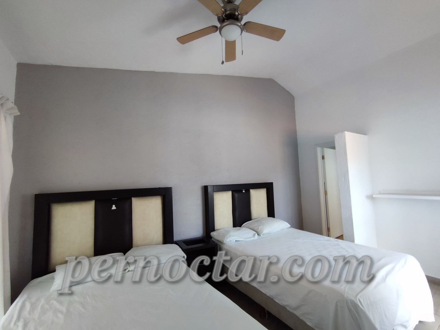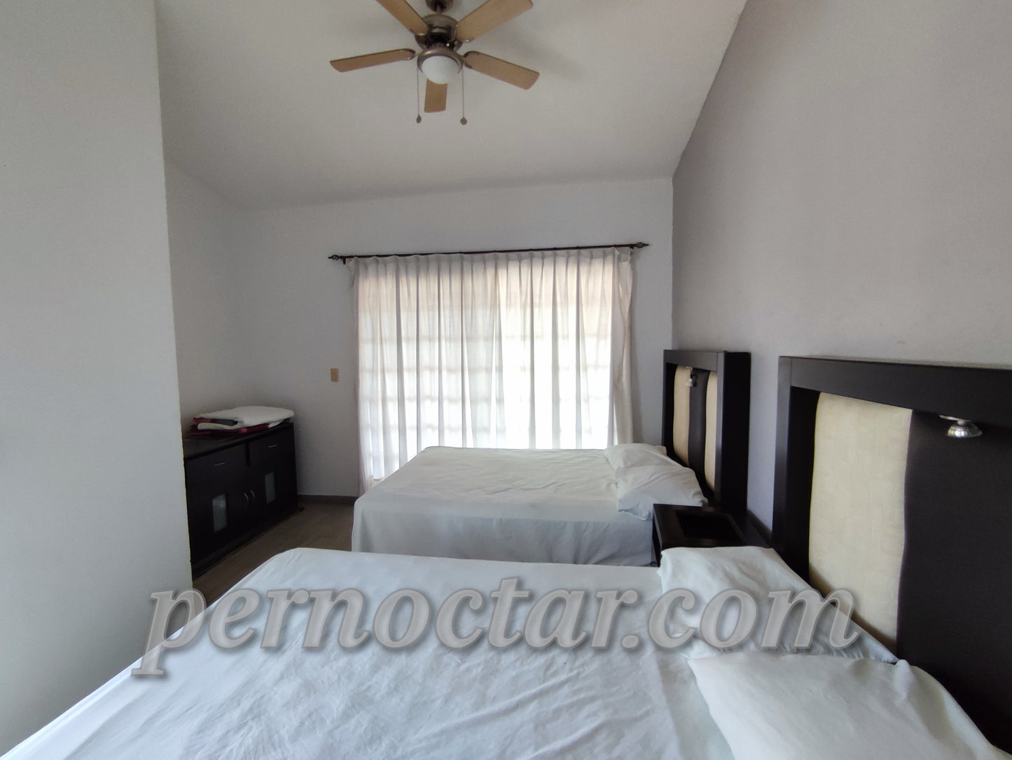 - 2 camas matrimoniales, ventilador de techo, baño completo.