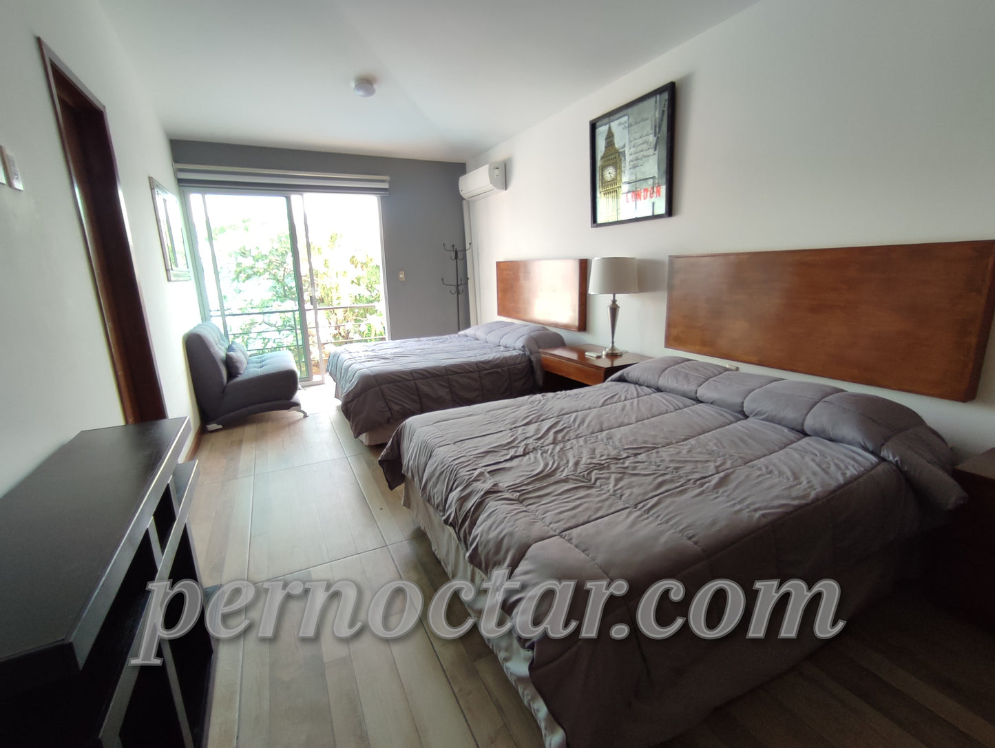 - 2 camas matrimoniales, baño completo, aire acondicionado.
