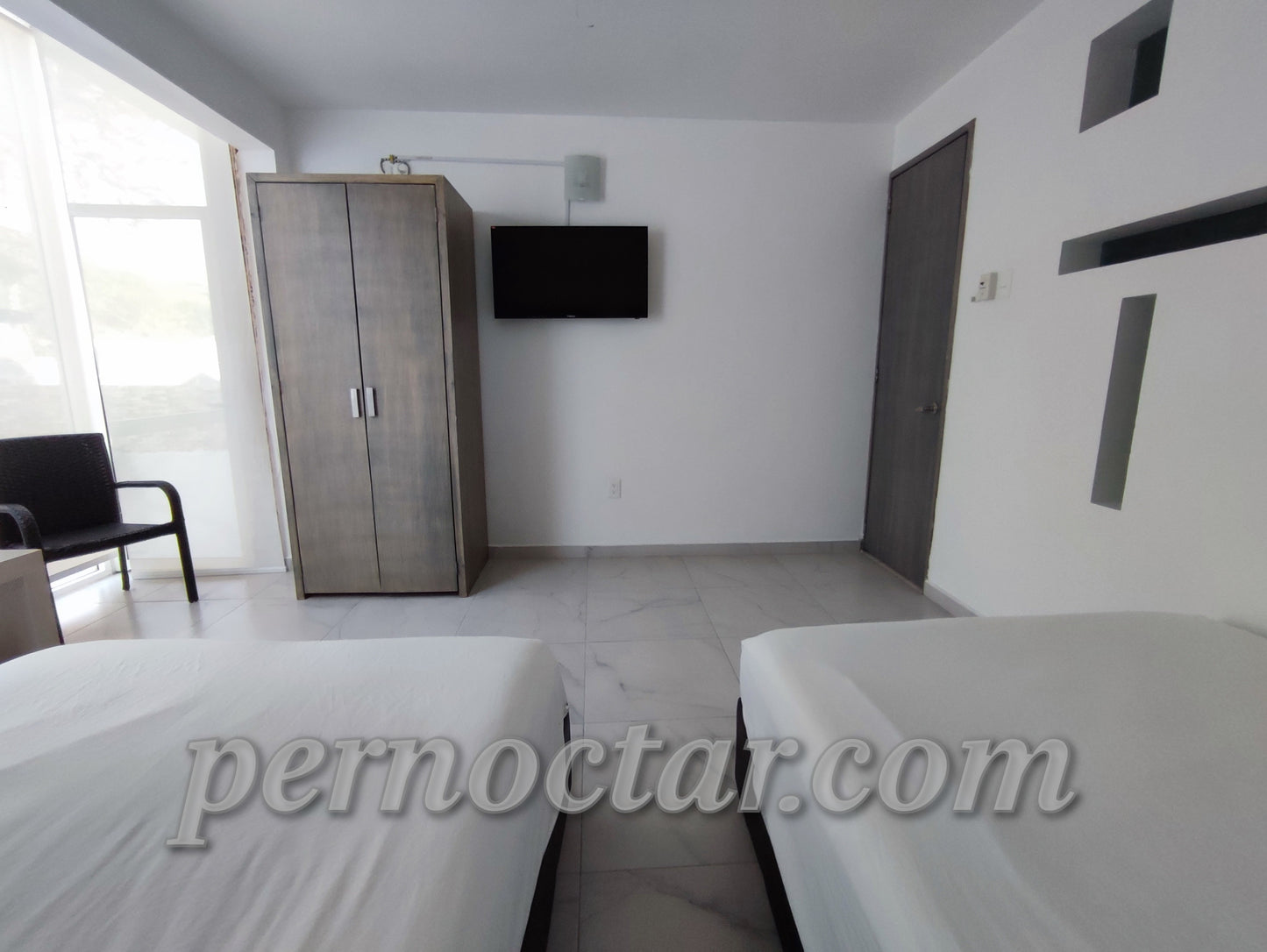 - 2 camas matrimoniales, aire acondicionado, TV con señal local (balcón).