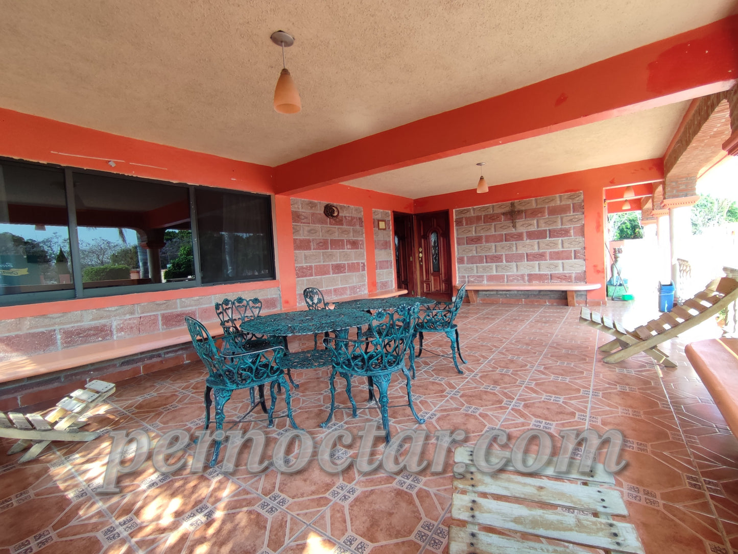 - Palapa: barra desayunadora, 15 bancos, tarja, asador fijo, refrigerador, juegos infantiles, cancha de usos múltiples. 2 baños completos.